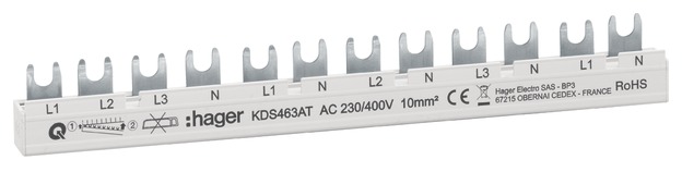 Hager KDN463A 10qmm Phasenschiene 4p Gabel für 3FI-Schalter 4polig