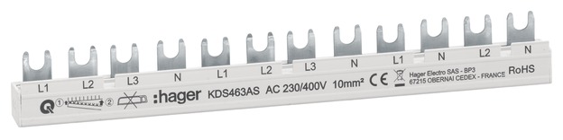 Hager KDS463AT Phasenschiene 12 Module 63A L1L2L3N-L1N-L2N-L3N-L1N QuickBusbar