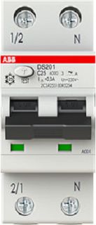 RCBO DS201 A Typ A ist 1-polig geschützt (LS), 2-polig schaltend.