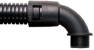 Adaptalok Typ C90 – 90°-Bogen Verschraubung, einteilig mit feststehendem Außengewinde als M16, Nennmaß: 13, in schwarz, flüssigkeitsdicht (IP66)