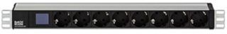 BN0500 19“ – Steckdosenleiste ALU 1HE 8x Schutzkontaktsteckdosen schwarz mit Leistungsmessung Profil: ALU eloxiert, Kunststoffteile schwarz 2,0m H05VV-F 3G1,50mm² schwarz mit Schutzkontaktwinkelstecker, inkl. Haltewinkel mit BACHMANN Logo verpackt im BlueNet Karton