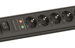 CONNECTUS Steckdosenleiste Kunststoffprofil mit Designendkappen Inkl. Langloch zur Wandmontage und Befestigungsmöglichkeit für Kabelbinder 1xSchalter 2-polig 6xSchutzkontaktsteckdosen, schwarz 1x Überspannungsschutz-Plus Graues Profil mit schwarzen Endkappen, Zuleitung 2,0m H05VV-F3G1,5mm², schwarz, mit Schutzkontaktwinkelstecker verpackt im Polybeutel