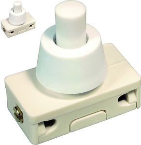 Einbau-Druckschalter Serie 3030 Farbe: weiß 2(1) A, 250V~ Ausschalter, 1-polig, T85°C, Zentralbefestigung M 10 x 1 mm Schraubkontakte Glockenmutter aufgeschraubt Gewindelänge 7,5mm