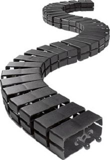 Flexibles Kabelführungssystem schwarz für die horizontale und vertikale Kabelführung. Die Kettenglieder sind tritt und bruchsicher. Zueinander verschiebbar angeordnete Kettenglieder. 2 Steckeransätze zur Kraftübertragung auch bei Drehmomenten und Querkräften. 2 K Farbe: sonstige