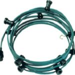 Lichterkette Länge: 10,0m mit 10 Fassungen E27 (montiert) Außenabmessung ca. 5,30 x 13,30 mm Farbe: Grün Für Leuchtmittel max. 1W / 2W P45 / 4W A60 Inklusive Gummistecker und Endstück mit Haken Dichtringe im Polybeutel beigelegt