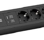 PRIMO 2 Steckdosenleiste Aluminium schwarz eloxiert Schwarze Design-Endkappen 1xFehlerstromschutzschalter 6xSchutzkontaktsteckdosen 35° schwarz Zuleitung: 2,0m H05VV-F 3G1,5mm² schwarz mit Schutzkontaktwinkelstecker mit BACHMANN Logo verpackt im Karton Anzahl der Steckdosen Dänische Norm (Erdungsstift): 0