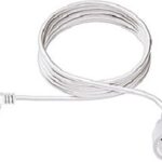 Verlängerung 3polig, 5m, weiß H05VV-F 3G1,50mm², mit erhöhtem Berührungsschutz Seite 1: Schutzkontakt-Winkelstecker Seite 2: Schutzkontakt-Kupplung im neutralen Polybeutel mit Etikett