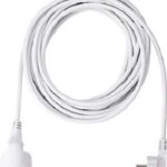 Verlängerung 3polig, 5m, weiß H05VV-F 3G1,50mm², ohne erhöhtem Berührungsschutz Seite 1: Schutzkontakt-Winkelstecker Seite 2: Schutzkontakt-Kupplung im Bachmann Polybeutel mit Etikett