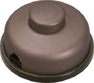 Tret-Zwischenschalter Serie 8009 2(1) A 250V Ausschalter, 1polig Gehäuse: braun / Knopf: braun Gehäuse-Schnappmontage, Zugentlastung geschraubt, Schraubkontakte, 2 Verbindungsklemmen für 2- und 3-adrige Kabel.