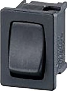 Einbau-Wippentaster Serie 3633 Farbe: schwarz 6(2)A, 250V, 1-polig, Schließer, T125°unbeleuchtet, Einbaumaß 19x13mm Flachsteckanschlüsse 4,8×0,8mm