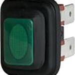 Einbau-Wippenschalter Serie 3658 16 (4) A, 250V, 2-polig, Ausschalter, T125° mit Beleuchtung, mit Gummidichtung Wasser- und Staubschutz gemäß IP65 Einbaumaß 19x13mm Flachsteckanschlüsse 6,3mm Gehäuse: schwarz Taste: rot beleuchtet Ausführung: Ausschalter
