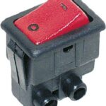 Wippenschalter Serie 8004 16(4) A 250V Ausschalter, 2polig, beleuchtet Gehäuse: schwarz / Wippe: rot Einrastbefestigung für Ausschnitt 22 x 30 mm, Flachsteckanschlüsse 6,3 mm, Schraubanschlüsse M3