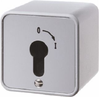 Der Schlüsselschalter für Aufputzmontage, geeignet für Profil-Halbzylinder, besteht aus Druckguss und ist nach IP Standard 44 spritzwassergeschützt. Er verfügt über einen 2-poligen Wechselschalter mit Tastrastfunktion. Nennstrom beträgt 10 Ampere bei einer Spannung von 250 Volt. Die Leitungseinführung hat einen Durchmesser von 22,5 Millimeter (PG 16). Ausgestattet mit Schraubklemmen und Deckelverriegelung, eignet sich der Schalter ideal für Berker Schalterprogramme.
