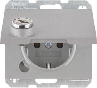 Berker SCHUKO-Steckdose alu/mt Steckklemme, Schloss 47637003