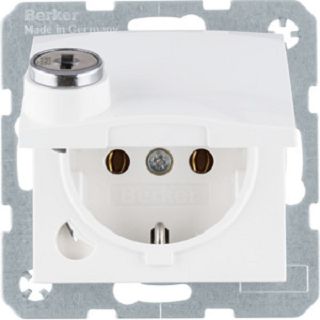 Schutzkontakt Steckdose m. Steckklemme,Klappd.,Schloss, S.1,polarweiß glänzend