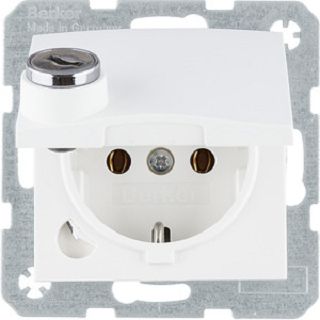 Schutzkontakt Steckdose m. Steckklemme,Klappd.,Schloss, S.1,polarweiß matt