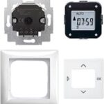 Geeignet für Rollladen- und Jalousieantriebe mit mechanischer oder elektronischer Endlagenabschaltung. Ohne Nebenstelleneingang. Geeignet für Rollladen- und Jalousieantriebe mit mechanischer oder elektronischer Endlagenabschaltung. Bestehend aus Jalousie-UP Einsatz ohne Nebenstelle. Bestehend aus Timer-Bedienelement. Bestehend aus Zentralscheibe für Timer-Bedienelement. Bestehend aus Abdeckrahmen, 1-fach. Neutralleiter Anschluss erforderlich. Für manuelles und zeitgesteuertes Schalten von Rollläden und Jalousien. Memoryfunktion zum einfachen abspeichern von Schaltzeiten. Manuelle Bedienung der Beschattung jederzeit möglich. Einfache Einstellung über Display mit Segmentanzeige und Hintergrundbeleuchtung. Ab Werk voreingestellte Schaltzeiten, individuelle Anpassung möglich. 2 Schaltzeiten pro Tag für jeden Wochentag frei einstellbar. Automatische Sommer-/Winterzeitumstellung (abschaltbar). Schaltzeiten/Programm sind netzausfallsicher gespeichert. Gangreserve für Uhrzeit und Datum > 10 Jahre. Designlinie: Reflex SI Designlinie Variante: Reflex SI