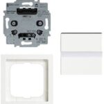 Einbaufertige Bewegungsmelder-Tastschalter-Kombination (Set-Verpackung).
