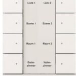 Bedienelement mit Raumtemperaturreglerfunktion und CO2-/Feuchtesensor. Mit integriertem KNX-Busankoppler. Mit Beschriftungsfeld. Unterstützung der KNX-Funktionen durch innovatives Farbkonzept (gelb=Beleuchtung, blau=Jalousie, orange=RTR, magenta=Szene und weiß=neutral/keine Funktionszuordnung) oder Standardbeleuchtung rot/grün