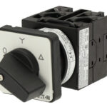 EIN-AUS-Schalter, Sortiment: EIN-AUS-Schalter, Typkenner: T0, mit schwarzem Knebel und Frontschild, 3-polig, Schutzart: Front IP65, Bauform: Einbau, Schaltwinkel: 90 °, Schaltverhalten: rastend, Frontschild: 0-1, Bemessungsbetriebsleistung AC-23A, 50 – 60 Hz 400 V: P = 5,5 kW, Bemessungsdauerstrom: Iu = 20 A, 2 Baueinheit(en), Normen und Bestimmungen: IEC/EN 60947, VDE 0660, IEC/EN 60204, CSA, UL, Lasttrennschalter nach IEC/EN 60947-3