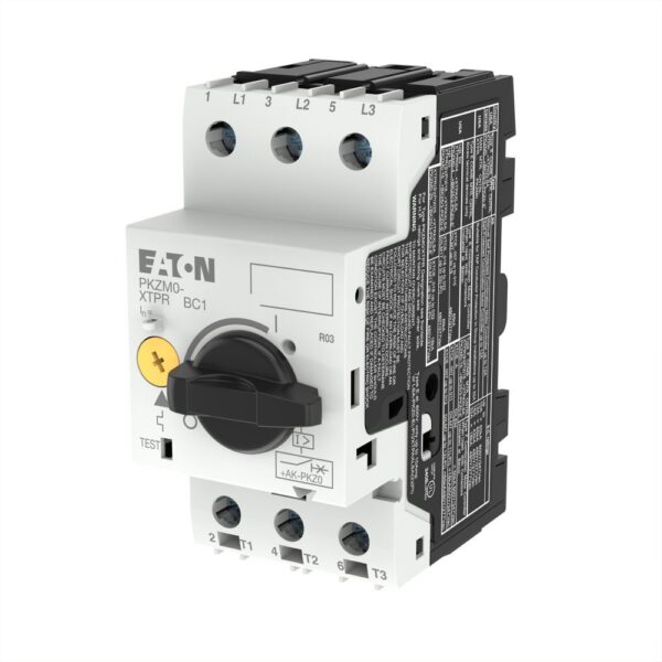 Motorschutzschalter nach IEC/EN60947, 3-polig Baugröße PKZM0, mit einstellbaren Überlast- und unverzögertem Kurzschlußauslöser, phasenausfallempfindlich, Schraub und Schnappmontage, mit Schraubklemmen, Kappeneinbaumaß 45mm, Bemessungsbetriebsspannung Ue 690V, Schutzart IP20, fingersicher nach VDE 0106 T. 100, Zubehör: Hilfsschalter, Spannungsauslöser, Schalter Modul, Clipsplatte