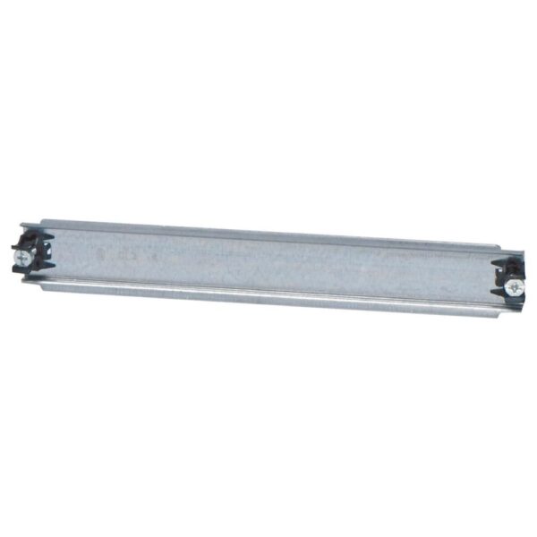 Tragschiene nach IEC/EN 60715, Stahlblech, verzinkt, enthält 2 unverlierbare Blechschrauben für die einfache Befestigung im CI-Gehäuse, Sockelhöhe = 7,5 mm, nutzbare Länge = 207 mm, verwendbar für Gehäuseabmessung 250 mm
