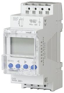 Digitale Zeitschaltuhr mit Wochenprogramm für DIN-Schiene, Federsteckklemmen, textorientierte Bedienerführung im Display, 56 Speicherplatze, Schnittstelle für Speicherkarte (PC-Programmierung), 10 Jahre Gangreserve (Lithium-Batterie), Nulldurchgangsschaltung für relaisschonendes Schalten und hohe Lampenlasten, EIN-AUS Schaltzeiten, Schaltungsvorwahl, Dauerschaltung EIN/AUS, itegrierter Betriebsstundenzahler, Ferienprogramm, Displaybeleuchtung (abschaltbar), PIN-Codierung