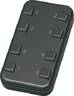 Funk-8-Kanal-Minihandsender 45x85mm, 18mm hoch. Gewicht nur 60 Gramm. Erzeugt die Energie für Funktelegramme selbst bei Tastendruck, daher ohne Batterie.