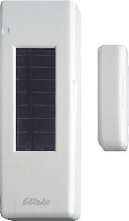 Funk-Fenster-Türkontakt mit Solarzelle 75x25x12mm, reinweiß glänzend. Befestigung durch Kleben. Schutzart IP54, daher auch für Außenmontage. Smart Home Sensor.