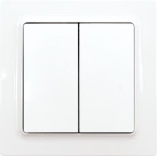 Funk-4-Kanal-Taster im E-Design55, 80x80mm außen, Rahmen-Innenmaß 55x55mm, 15mm hoch. Erzeugt die Energie für Funktelegramme selbst bei Tastendruck, daher ohne Anschlussleitung und kein Stand-by-Verlust. Funktaster mit Doppelwippe können vier auswertbare Signale senden: Zwei Wippen je oben und unten drücken. Die Halteplatte kann über einer Gerätedose mit einem Schraubabstand von 60mm oder auf eine ebene Fläche geschraubt werden. Mit der beiliegenden Klebefolie kann der Funktaster an die Wand, auf Glas oder auf Möbel geklebt werden. -OR-Typen ohne Einzelrahmen im Lieferumfang für die Montage in Mehrfach- oder Fremdrahmen.