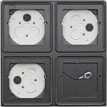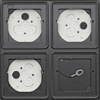System 106 Aufputz-Gehäuse Anthrazit (lackiert) 2 x 2fach Merkmale: Sehr geringe Aufbauhöhe von 28,4 mm. Senkrechte und waagerechte Montage (nur bei Aufputz-Gehäuse 2fach, 3fach, 4fach und 5fach) ermöglicht eine optimale Anpassung an den Einbauort. Für die Verwendung auf Fassaden mit Wärmedämmverbundsystem geeignet