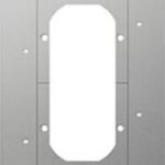 – Befestigungsset für Installationsprofil. Mithilfe dieses Profils können Türstationen, Ruftaster, Info-Module und Farbkameras ohne Abdeckrahmen flächenbündig integriert werden. Der Höhenausgleich stellt sicher, dass sich die Komponenten auch bei unterschiedlichen Materialstärken bündig einbauen lassen.