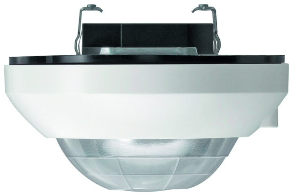 Präsenzmelder Standard für KNX Reinweiß Präsenzmelder zur Anwesenheitsüberwachung (Betriebsart: Präsenzmelder), zur Bewegungserkennung (Betriebsart: Deckenwächter) oder zur Überwachung durch Meldetelegramme (Betriebsart: Melder) in Innenräumen. Merkmale: Unterputz-Gerät mit integrierter KNX Busankopplung. Programmier-LED -taste nach Abnahme des Zierrings im eingebauten Zustand sichtbar bedienbar. PIR-Sensorik: drei Sensoren (gekreuzte Strahlengänge), integrierter Helligkeitssensor. Einsteller zur manuellen Korrektur der Empfindlichkeit. Empfindlichkeit konfigurierbar. Empfindlichkeitseinsteller am Gerät über Software deaktivierbar. Anzeige der Bewegungserfassung (permanent oder nur im Gehtest). Ein Funktionsblock konfigurierbar. Anzeige der Bewegungserfassung (permanent oder nur im Gehtest). Einstellbare Betriebsart: Deckenwächter, Präsenzmelder, Melder. Einzelgerät, Hauptstelle, Nebenstelle einstellbar. Betriebsart bei Einzelgerät bzw. Hauptstelle: Automatik, Halbautomatik (Manuell EIN Automatik AUS bzw. Automatik EIN Manuell AUS). Zwei Ausgänge (Bei Funktion: Deckenwächter, Präsenzmelder). Ausgang (Bei Funktion: Deckenwächter, Präsenzmelder): Schalten, Treppenhausfunktion, Schalten mit Zwangsstellung, Dimmwertgeber, Lichtszenennebenstelle, Temperaturwertgeber, Helligkeitswertgeber, Temperaturbetriebsmodus. Dämmerungsstufe über externes Kommunikationsobjekt oder per Teach-In einstellbar. Zusätzliche Sendeverzögerung über externes Kommunikationsobjekt. Adaptive Nachlaufzeit (Selbstlernende zusätzliche Sendeverzögerung). Kurzzeit-Präsenzfunktion. Rückmeldung der Dämmerungsstufe. Sperrfunktion. Handbetätigung über Tastsensor (separates Kommunikationsobjekt). Abschalthelligkeit (bei Präsenzmelder) über Teach-In. Messung der Zeitspanne nach letzter Bewegung. Hinweise : Der Präsenzmelder ist nicht für Alarmmeldungen in VdS-konformen Alarmanlagen geeignet. Deckenmontage an festen Decken in Gerätedose oder Aufputz-Gehäuse.