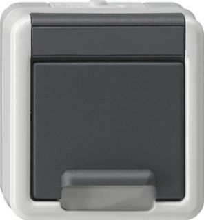 mit Klappdeckel und erhöhtem Berührungsschutz (Safety Plus) Grau WG AP – Kunststoff: halogenfreier, schlag- und bruchsicherer Thermoplast – Wassergeschützt Aufputz IP66 Erhöhter Berührungsschutz (Safety Plus) gemäß DIN VDE 0620-1.
