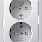 SCHUKO-Doppelsteckdose 16 A 250 V~ mit erhöhtem Berührungsschutz (Safety Plus) für Unterputz-Gerätedose 1,5fach Reinweiß glänzend Merkmale: Hinweise: Passend für Kompakt-Gerätedosen Attema UK 40 und Typ H 140 von ABB/HAF. Erhöhter Berührungsschutz (Safety Plus) gemäß DIN VDE 0620-1.