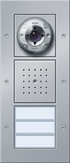 Türstation Video AP 1fach Anthrazit Merkmale: Komplett vormontierte Türstation AP für die senkrechte Aufputz-Montage. Dadurch schnelle und saubere Montage möglich. Im Design des Schalterprogramms Gira TX_44. Verwindungssteifes Aufputz-Gehäuse durch Aluminiumprofil. Abdeckrahmen aus bruchsicherem Thermoplast mit hoher UV-Stabilität sowie einer kratzfesten, pflegeleichten Oberfläche. Diebstahlschutz mittels Schrauben mit Innensechsrund. Signalübertragung und Versorgung der Audio- und Videokomponenten über verpolungssicheren und kurzschlussfesten 2-Draht-Bus. Einmann-Inbetriebnahme durch einfache Inbetriebnahme-Prozedur. Wetterfester Lautsprecher. Hochwertiges Elektretmikrofon. Freisprechfunktion (sprachgesteuertes Gegensprechen mit Echo- und Hintergrund-Geräuschunterdrückung). Quittungston bei Ruftastenbetätigung. Sprechlautstärke einstellbar. Weiße Ruftastenausleuchtung in LED-Technologie. Durch die wartungsfreie und stromsparende LED-Technologie wird eine gleichmäßige, gut sichtbare Ruftastenausleuchtung erreicht. Spritzwasserdichte Ruftastenabdeckung aus schlagfestem Kunststoff. Namensschild des Ruftasters ohne Werkzeug und ohne Rahmendemontage austauschbar. Professionelle Beschriftung über den Gira Beschriftungsservice www.beschriftung.gira.de oder die Gira Beschriftungssoftware. Türstation mit Farbkamera, Türlautsprecher und Ruftaster. Automatische Tag- bzw. Nachtumschaltung: Die Kamera schaltet ab einer definierten Umgebungshelligkeit von Tagbetrieb (Farbdarstellung) auf Nachtbetrieb (Schwarz-Weiß-Darstellung) und umgekehrt. Aufgrund der hohen Lichtempfindlichkeit im Nachtbetrieb werden gute Darstellungsergebnisse auch bei schlechten Lichtverhältnissen erreicht. Leuchtdioden sorgen im Nachtbetrieb für eine gleichmäßige Gesichtsfeldausleuchtung im Nahbereich. Kamera horizontal und vertikal um 20° manuell schwenkbar. In Kombination mit dem Weitwinkelobjektiv ergibt sich daraus ein sehr großer Sichtwinkel. Automatische Gegenlichtkompensation. Automatischer Weißabgleich. Automatische Verstärkungsregelung (AGC). Integrierte Kameraheizung mit Temperaturerfassung. Spritzwasserdichte Abdeckung. Kameraabdeckung aus schlagfestem Kunststoff, bei Beschädigung, z. B. durch Vandalismus, leicht austauschbar. Hinweise: Lieferumfang: