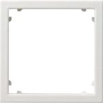 Adapterrahmen mit quadratischem Ausschnitt für Geräte mit Abdeckung (45 x 45 mm) Cremeweiß glänzend – Mit dem Adapterrahmen und Abdeckrahmen (1- bis 5fach) lassen sich Fremdgeräte mit quadratischer Zentralplatte, z. B. für Alcatel Datenkommunikation, in das System 55 integrieren.