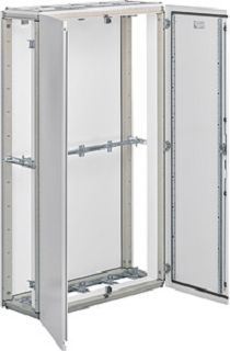 Anreihstandschrank, univers, IP Standard 54, Schutzklasse II, Maße: 1900x1110x400 mm. Geeignet für Innenraummontage, entspricht VDE 0660, DIN EN 61 439-1/-2. Bemessungsisolationsspannung Wechselstrom 800 Volt, Überspannungskategorie IV, Verschmutzungsgrad 3. Modular erweiterbar, 144-864 Platzeinheiten, einsetzbar für Netzsysteme bis 1600 Ampere. Gehäuse aus glasfaserverstärktem Kunststoff, Türen aus pulverbeschichtetem Stahl, optional mit Sockelleiste