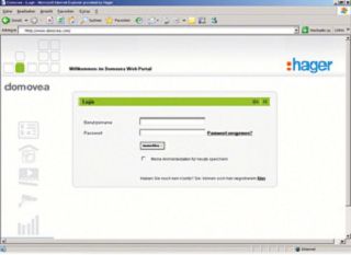 Fernzugriff nur für domovea V1.Weltweiter Fernzugriff auf ein KNX System über das Hager-Portal und den domovea-Server. Nach Vergabe von Benutzername und Passwort wird die Bedienseite im Hager-Portal konfiguriert