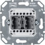 Wipp-Jalousieschalter-Einsatz, Drehgriff, 1-polig, 16 A, 250 V AC. Jalousie-Drehgriff Schalter/Taster, 1-polig, Tast- oder Rastfunktion definierbar durch entfernen oder abbrechen eines eingelegten Messingsteges. Geeignet zur Steuerung von AC- und DC-Antrieben