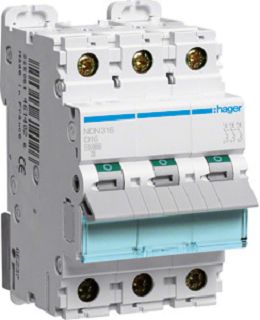 Hager Leitungsschutzschalter D16A 10kA 3-polig 230/400V D-Charakter. NDN316