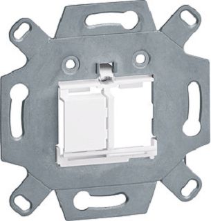 Montagerahmen Keystone 2-fach, f. Zentralscheibe TAE 3-fach, hfr, reinweiß. Montagerahmen zur Aufnahme von zwei Keystone Einsätzen mit einer jeweils maximalen Modulbreite von 14,7 mm. Zum Einbau in anreihbare Gerätedosen für Brüstungskanäle, mit reduzierter Einbautiefe zum bündigen Abschluß mit der Verschlußkontur des Brüstungskanals. Zur Verwendung mit Zentralscheiben für Montagerahmen Keystone 2-fach mit Maß 55 x 55 mm