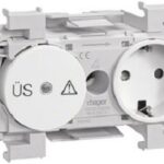 Steckdose 2-fach 45° mit Wago Steck-/Klemmtechnik C-Profil in reinweiß. Kanalsteckdose 2-fach mit erhöhtem Berührungsschutz, Steckdosentopf 45 Grad, vorverdrahtet, mit Schnellbefestigung für C-Profil Geräteeinbau, anreihbar durch 3-poliges Steckverbindersystem. Leitungsanschluss über Steckklemmen 1,5 – 2,5 mm² oder über verpolungssicheres Steckverbindersystem