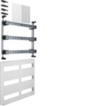Verteilerbaugruppe univers N, Maße 450x750mm, für waagerechte Montage von Reiheneinbaugeräten. Bietet Platz für 9×12 Platzeinheiten. Geeignet für Schaltgerätekombinationen, Bemessungsspannung 3 Wechselstrom 690 Volt /50 Hertz. Ausgestattet mit plombierbaren Berührungsschutzabdeckungen, verstärkt durch Gasinnendruckverfahren und Schnellverschlussbolzen. Konform mit DIN EN 61 439 -1, -2, -3 und VDE 0660 Teil 600 -1, -2, -3. Maßnorm: DIN 43 870.