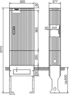 Verteilersäule, Baureihe 205, leer, 2010 x 583 x 277 mm Ausführung Deckel: ohne