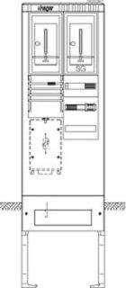 Zähleranschlusssäule 205, universN, 2 ZP, 3-Punkt, 5-polig, Leerplatz, HAK.Bestückte Zähleranschlusssäule nach DIN EN 61439, Schutzart IP 44, mit Eingrabsockel, aus glasfaserverstärktes Polyester FS 833.5 nach DIN EN 14598. Zähleranschlusssäule ist nach den aktuellen technischen Anschlussbedingungen des jeweiligen Energieversorgers bestückt und deckt die jeweiligen TAB-Anforderungen ab. Profiliertes Gehäuse im Rippendesign. Tür mit Öffnungswinkel 180 Grad bei freiem Stand und 90 Grad bei angereihten Gehäusen. Rechte Tür ist aushängbar. Schließung mit Schwenkhebel und Drei-Punkt-Basküleverschluss mit 1 bzw. 2 Profilhalbzylindern. Eingebauter Zylinder unten mit gleichschließender Serie. Ein zweiter Schließzylinder (z. B. aus VNB-Schließanlage) kann oben nach Entfernen des Vierkantverschlusses eingebaut werden. Wenn kein zweiter Profilhalbzylinder eingebaut wird, muss die zweite obere Öffnung mit einem Blindverschluss bestückt werden. Die Belüftung erfolgt über labyrinthartig ausgebildete Lüftungskanäle und ist durch Eindringen von Fremdkörpern stochersicher. Zähleranschlusssäulen sind gebaut nach technischer Richtlinie Anschlussschränke im Freien/Anschluss von ortsfesten Schalt- und Steuerschränken und Zähleranschlusssäulen an das Niederspannungsnetz des VNB. Der Einbau besteht aus schutzisolierten Zählerfeldern DIN 43870 (Funktionsflachen) für Zähler und Tarifschaltgerät (TSG). Zählerplätze bzw. TSG- Platz sind vorgerichtet mit einer IP54 Abdeckung. Je nach Ausführung sind Leerplätze als Nachrüstfelder vorgesehen. Eingrabsockel und Zähleranschlusssäule bilden eine Einheit. Ein Bodenrost ist empfohlen. Zur Betauungsvermeidung ist der Sockel bis zur Höhe der Kabelbefestigungsschiene innen mit Sockelfüller aufzufüllen