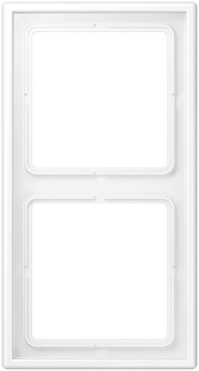 Rahmen 2fach, schneeweiß matt für waagerechte und senkrechte Kombination Mit Dichtungsflansch Art.-Nr.: 551 WU ist der Schutzgrad IP 44 gewährleistet. Material: Duroplast lackiert Maße (B x H): 81 x 152 mm