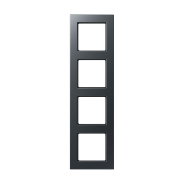 Rahmen 4fach, anthrazit matt für waagerechte und senkrechte Kombination für die Serie A 1fach-Rahmen auch für British-Standard-Installationen geeignet (Tragring 80 x 80) IP20 Material: Thermoplast lackiert Maße (B x H): 85 x 298 mm