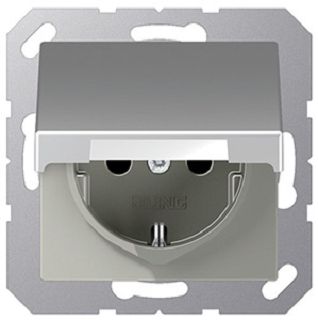 Jung SCHUKO Steckdose, 16 A 250 V ~, Ber ührungsschutz, Klappdeckel, Serie A, alu A1520BFKIKLAL