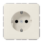 SCHUKO® Steckdose, alpinweiß mit Klappdeckel (mit Rückstellfeder) mit integriertem erhöhten Berührungsschutz (Safety Plus) mit Federklemmen für starre und unbehandelte flexible Leiter bis 2,5 mm2 Verbindungsklemmen nach DIN VDE 0620 Tragring, Krallen und Krallenschrauben sind über eine Erdungsschiene in die Schutzmaßnahme eingebunden. Material: Duroplast Maße (B x H): 55 x 55 mm